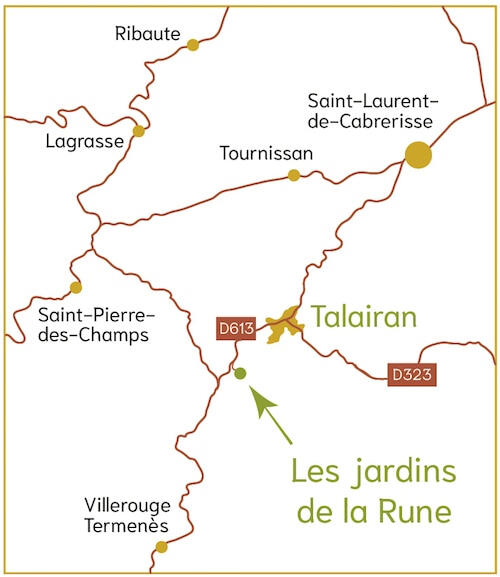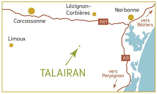 À 2 km de Talairan par la D163 : domaine La Rune, route de Villerouge 11220 Talairan.