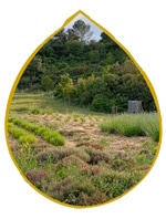 Sur une autre parcelle, au milieu de la garrigue, sont cultivées des plantes médicinales : lavande, immortelle, thym, camomille, romarin, sarriette... Elles sont transformées chaque année sous forme de préparations médicinales : huiles essentielles, hydrolats, baumes, huiles de macération, crèmes, encens, etc.